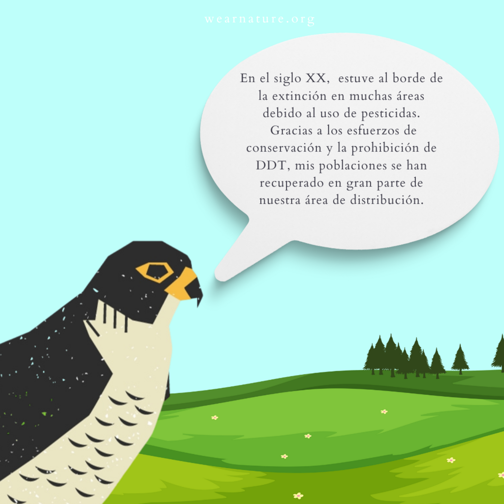 El halcón peregrino es un símbolo de éxito en la conservación de especies. En las décadas de 1960 y 1970, la población de halcones peregrinos estaba en peligro crítico debido al uso de pesticidas como el DDT. Gracias a los esfuerzos de conservación, la especie se ha recuperado significativamente. Esta historia de recuperación puede resonar con los valores de WearNature y sus clientes, mostrando que los esfuerzos de conservación pueden tener un impacto real y positivo.